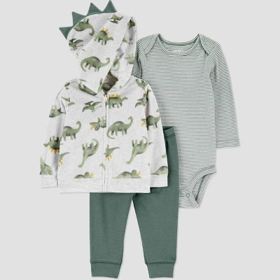 Baby is cozy and stylish in this layered look by Carter’s Just One You. This 3-piece set for baby has everything you need for the changing season – a hooded jacket layered over a long sleeve bodysuit and matching pants with a fun print. Your tiny trendsetter is ready for park playdates, birthday parties, and everything in between. Giving style and convenience, the bodysuit has overlap shoulders for easy dressings and strong snaps at the legs!