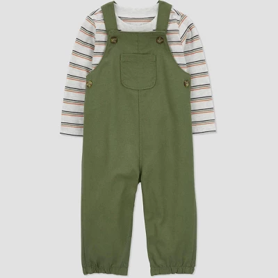 Baby boy’s signature Fall look has arrived. Here’s an adorable 2-piece overall set from Carter’s Just One You that meets your needs for easy functionality while also making sure your little mini is styled perfectly for outings. This 2-piece outfit for baby boy features green twill overalls with a center pocket and snaps at the legs for seamless diaper changes! The striped bodysuit is long-sleeve to keep him cozy.
