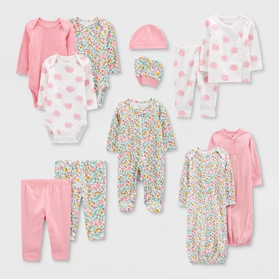 Outfits for baby are endless with this 12-piece newborn set from Carter’s Just One You. Made from 100% cotton, each item in this layette set is soft against baby’s skin and comfy enough for tummy time, playtime, or nap time. The set includes two long-sleeve gowns for cozy sleeping and easy changing, three bodysuits to mix & match with ease, one sleep and play, three pairs of easy-on pants, one button-front tee, and a pair of mittens to keep baby’s face free of scratches. With fun prints for baby girl and features that moms love, this is a dream set for new parents!