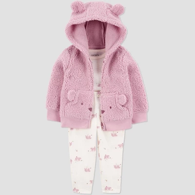 Baby is cozy and stylish in this layered look by Carter’s Just One You. This 3-piece set for baby has everything you need for the changing season – a hooded jacket layered over a long sleeve bodysuit and matching pants with a fun print. Your tiny trendsetter is ready for park playdates, birthday parties, and everything in between. Giving style and convenience, the bodysuit has overlap shoulders for easy dressings and strong snaps at the legs!