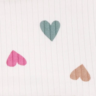- Includes bodysuit, short sleeve top and matching pants Bodysuit: 100% cotton, Babydoll tee and Pants: 95% cotton, 5% elastane Heart print, overlap shoulders on bodysuit