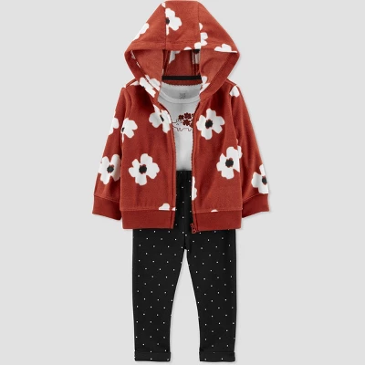 Made from Just One You by Carter’s, this set has every parent’s convenience in mind. To start, there’s a cozy jacket with a fun, allover print, and a perfectly matching bottom. Then, to tie it together, there’s a neutral bodysuit with snaps where it counts. This set has everything you need to complete baby girl’s look of the day – no hassle, all charm. This floral set is both essential and so baby-friendly.