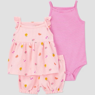 Add to cart: Adorable 3-piece outfit set for baby girl from Carter’s Just One You. This sweet outfit includes two sleeveless tops: one pink tank with fruit print and one pink striped bodysuit. Plus, a pair of coordinating shorts that are easy to mix and match! Dress her up in this sunny weather look for parties, playdates, and anything in between. This 3-piece summer set for baby is the perfect baby shower gift for a new baby girl!