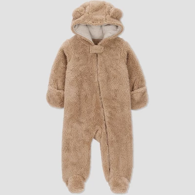 Chilly days ahead? Embrace the layers with this hooded faux shearling 1-piece pram for baby from Carter’s Just One You. This warm 1-piece jumpsuit is the perfect coverall for baby featuring a full-length zipper and foldover mittens to keep them warm! The little animal ears on the hood make this 1-piece for baby even more adorable!