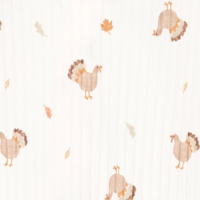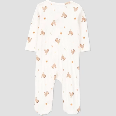 The holiday season is busy; make your life easier with this Carter’s Just One You sleep and play for Thanksgiving. Put baby to sleep in this cozy 1-piece and wake up ready for a day of excitement. The head-to-toe zipper makes changes easy, and the turkey all-over print plus turkey foot art will make sure baby is festive for the occasion. Newborn and three-month sizes feature foldover mittens to keep baby from scratching!