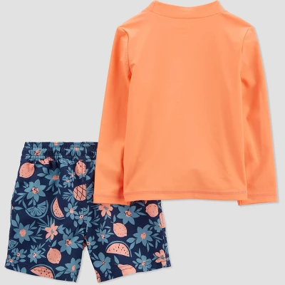 Endless fun is on the schedule when your toddler boy wears this 2-piece swimwear set from Carter’s Just One You. The ultra-cool rashguard top features a fun graphic and when paired with the coordinating swim trunks, he has a complete fun-in-the-sun look! Also, while he’s splashing and playing, this 2-piece rashguard set keeps his skin protected with UPF 50!